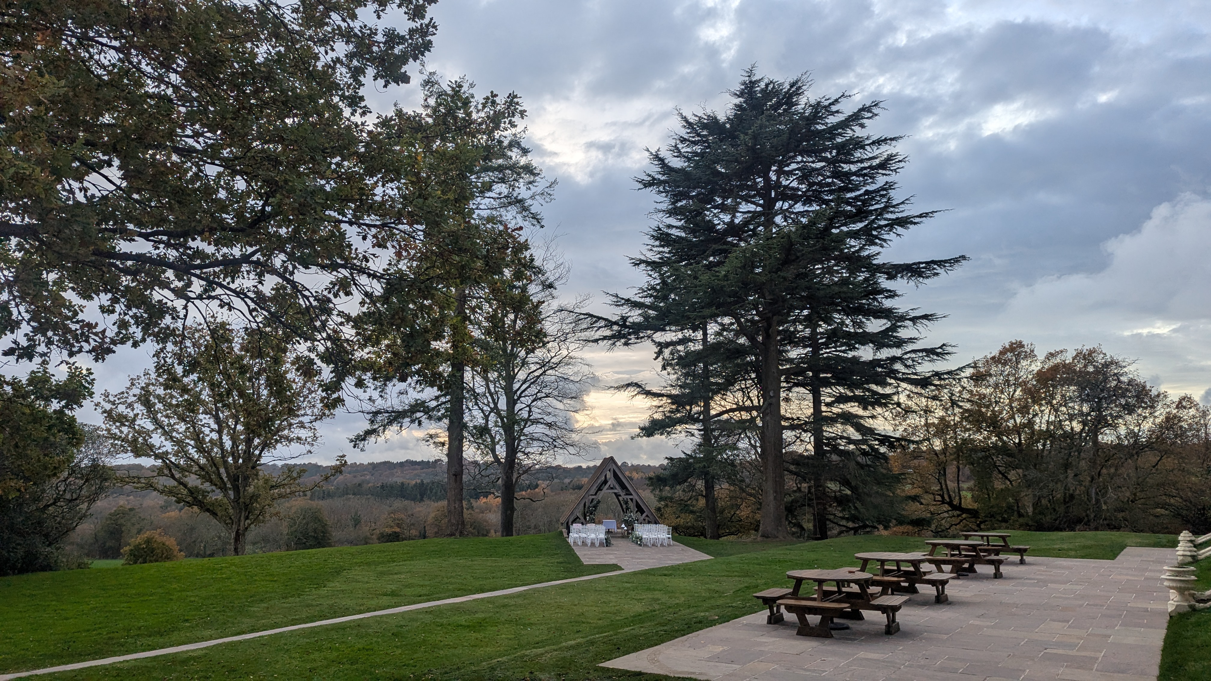 These two had chosen to do this outside in the magnificent setting overlooking the countryside views, and so, with multiple layers on to keep warm in the chill of the November wind, we were all set to give this couple the very best start to their day of celebrations!