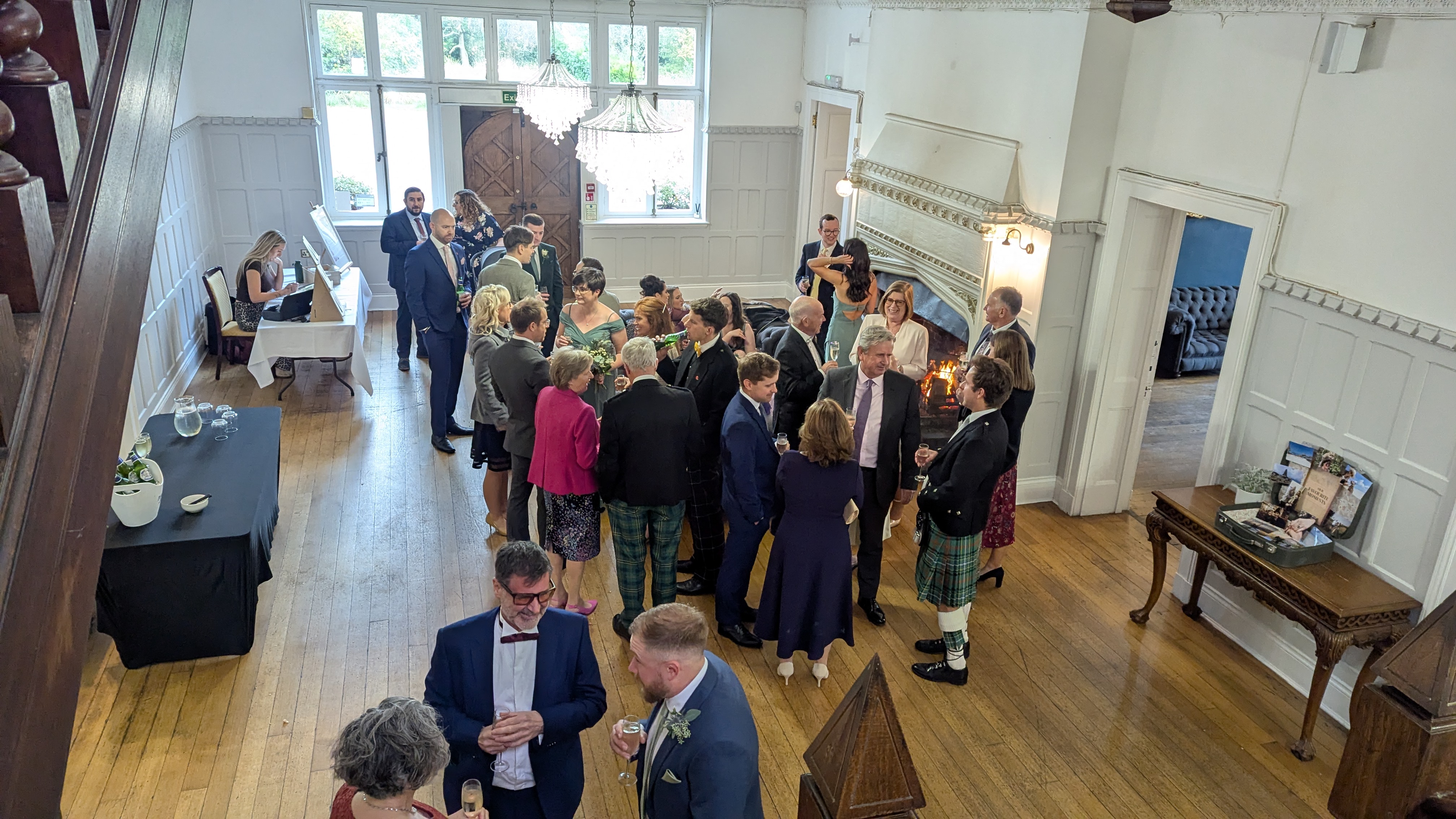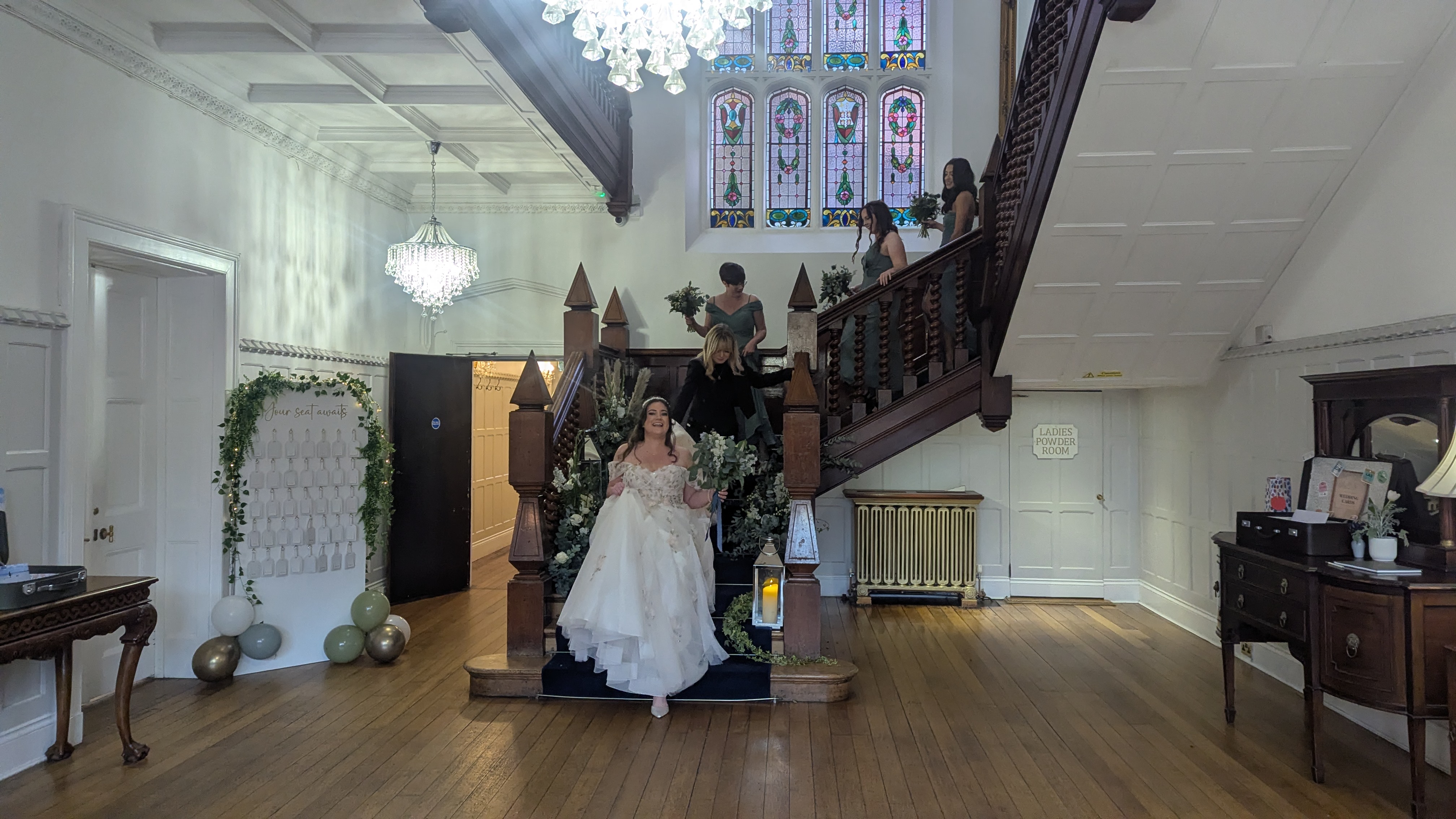 When I arrived, I met with the venue team, the fab florist, and their photographer, all of whom were amazing and fully on board to help this pair have the best day. With all of my checks completed and cues organised, I popped in to see the bride and her wedding crew, who were all in really high spirits and ready to get her wed. There was a lovely buzz in the 'getting ready room' and I met with her bridesmaids and bridesmen who were all very excited indeed.