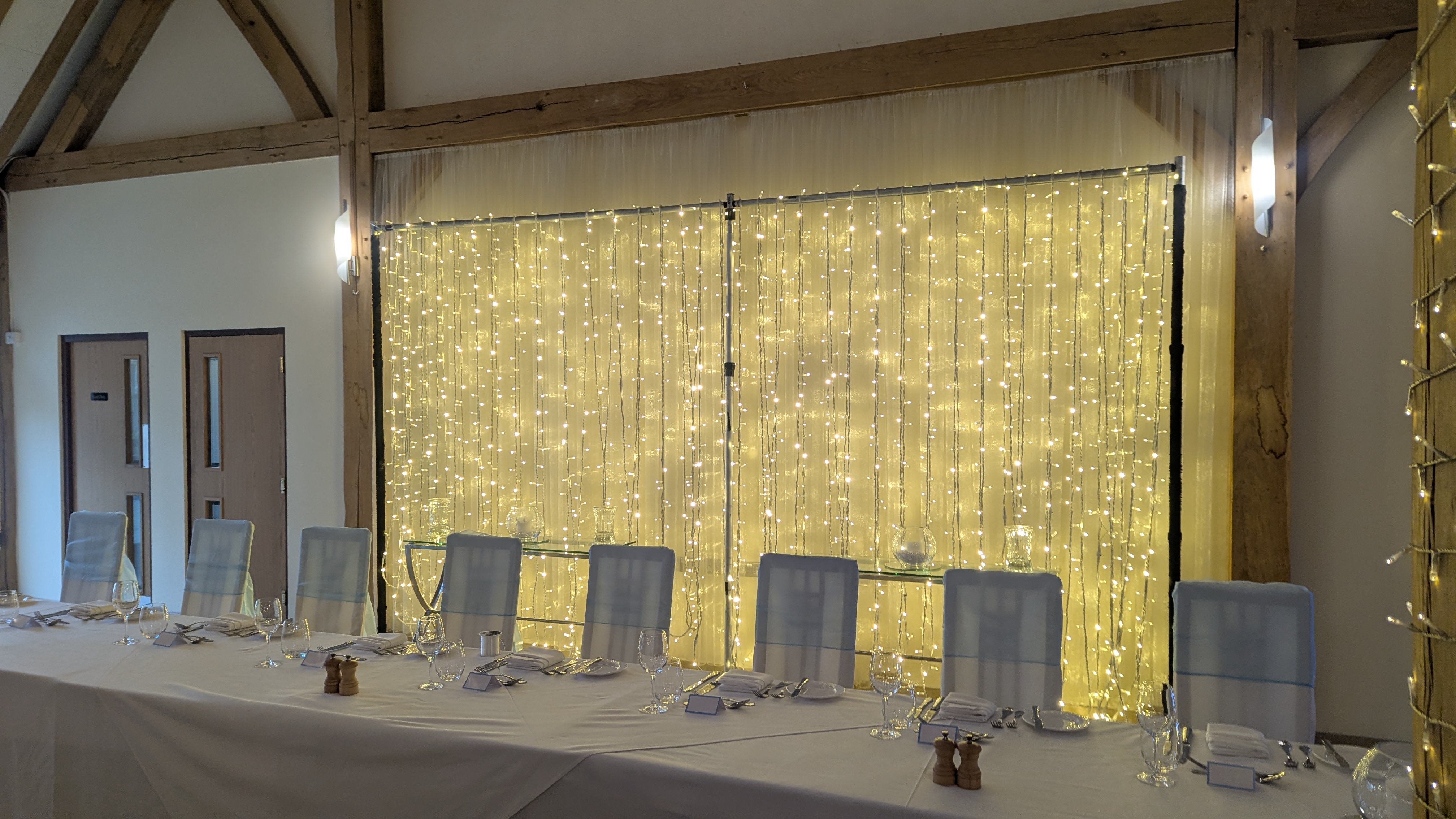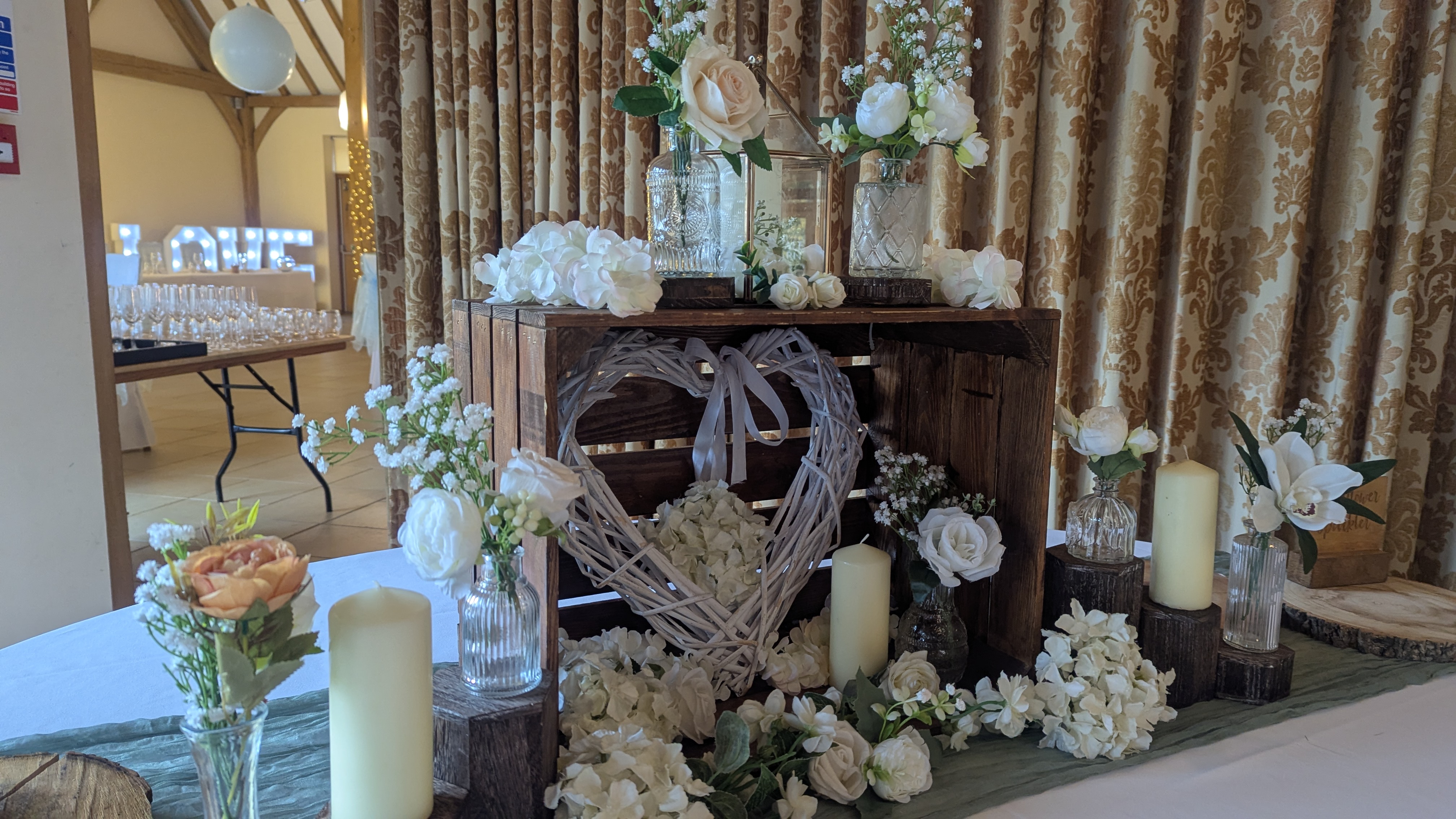 I caught the groom putting finishing touches to the wedding breakfast space, and so I coaxed him out and sent him off to get ready, and I finished decorating tables and took lots of photos to show the bride, as she wanted a sneak peek at it all. It looked phenomenal, and I have not seen the barn looking so beautiful. It was perfectly lit, had the right amount of decor, and was in their colour theme of baby blue.