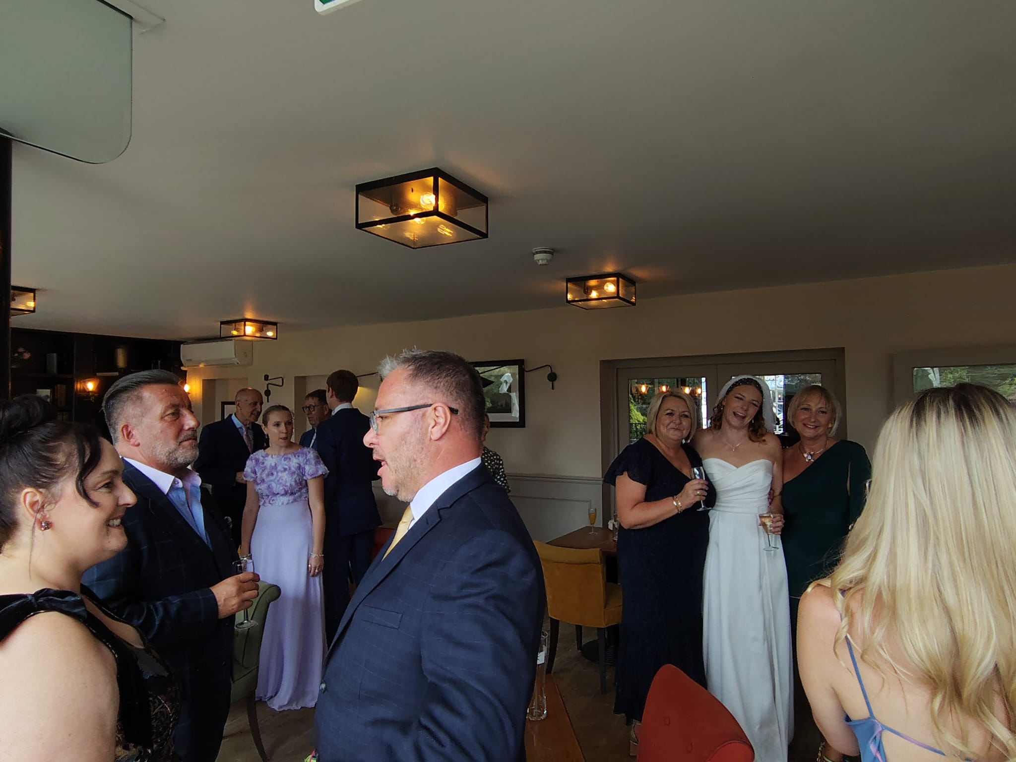 From the very start, this wasn’t going to be a traditional ceremony. Once the couple joined me at the front of the room we invited the bride’s father to join us to take a selfie with the bride, groom, and all the guests in the background – a brilliant way to capture the excitement and kick off the day with the kind of icebreaker that filled the room with laughter and set the tone for the rest of the day.