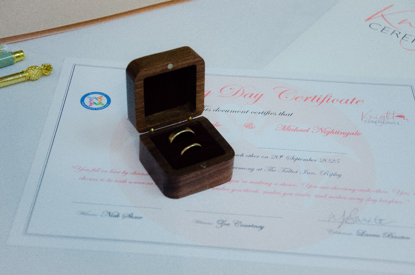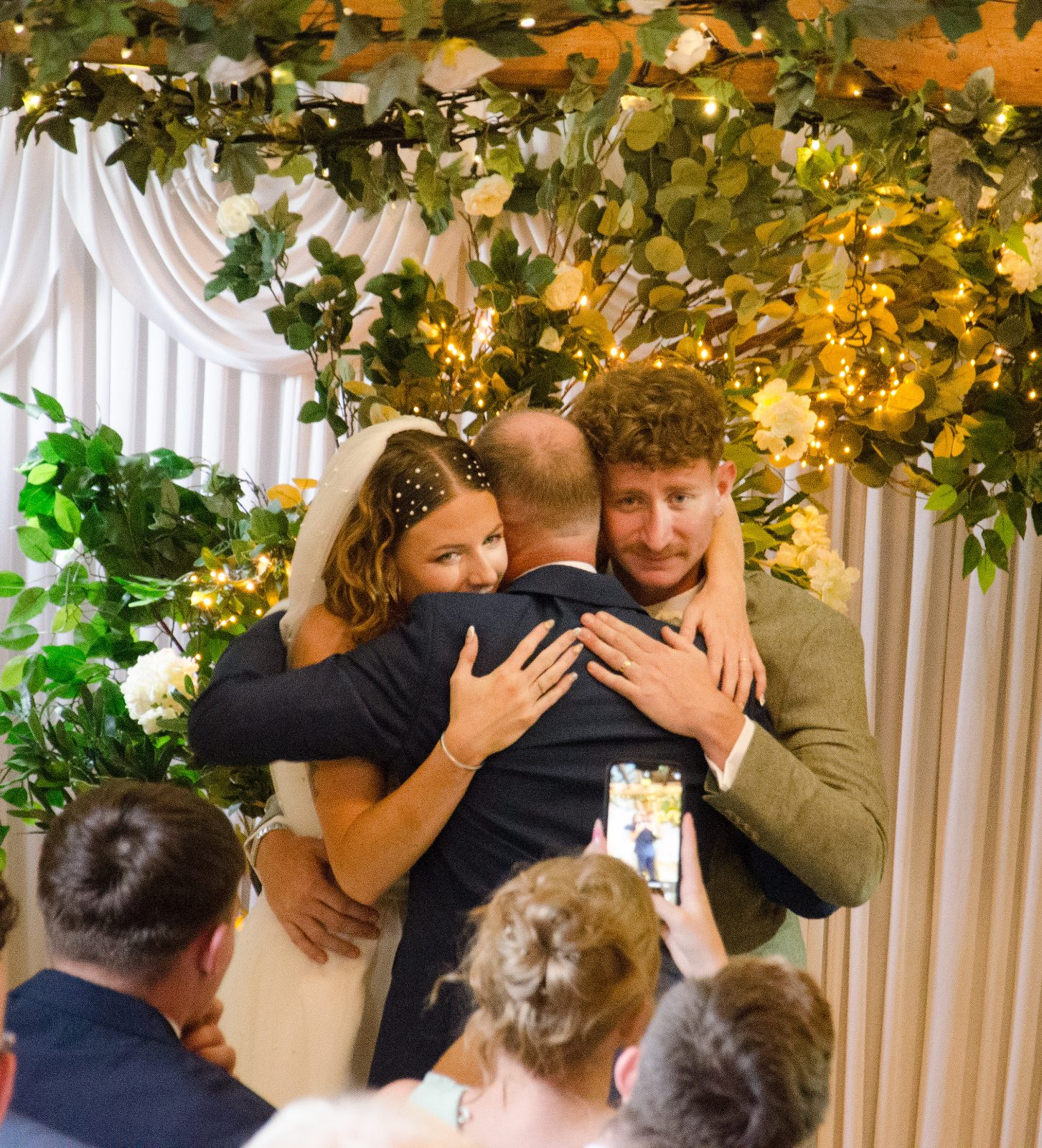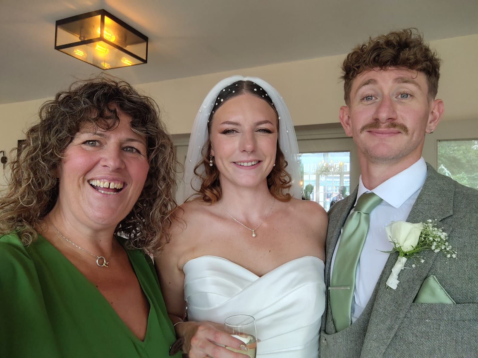 "Some weddings are beautiful, some are joyful – and then there are weddings like this one, bursting with love, laughter, and unforgettable personal touches in equal doses. I’d been looking forward to this wedding day, excited to see my couple in their finery, (the bride's dress had a fabulous split all the way up the front), and deliver what promised to be a fun ceremony!